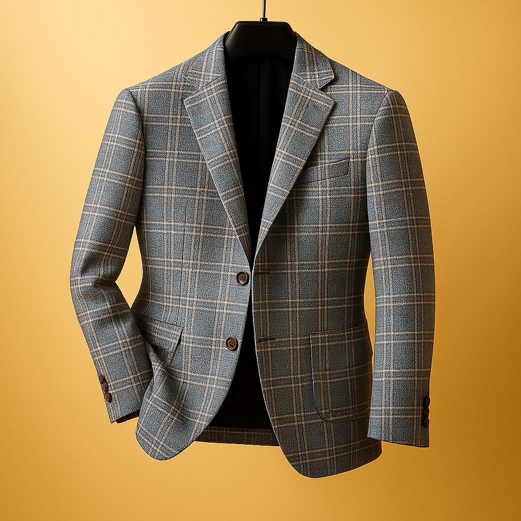 A balanced, modern cut restores clarity to the silhouette, using precise shaping and a crisp plaid layout to avoid the stiffness or dated lines found in older jackets. A textured woven fabric delivers a firm yet comfortable structure with neatly defined pattern alignment. The interior is finished with straightforward pocketing to keep the piece practical without excess bulk.