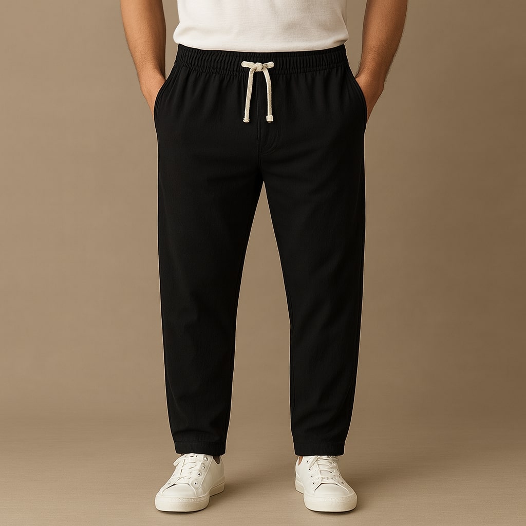 A flexible cotton weave improves mobility, avoiding the stiff drag that limits movement in traditional casual pants. The stable surface resists wrinkling and slows early wear-outs, keeping the silhouette tidy through repeated use.