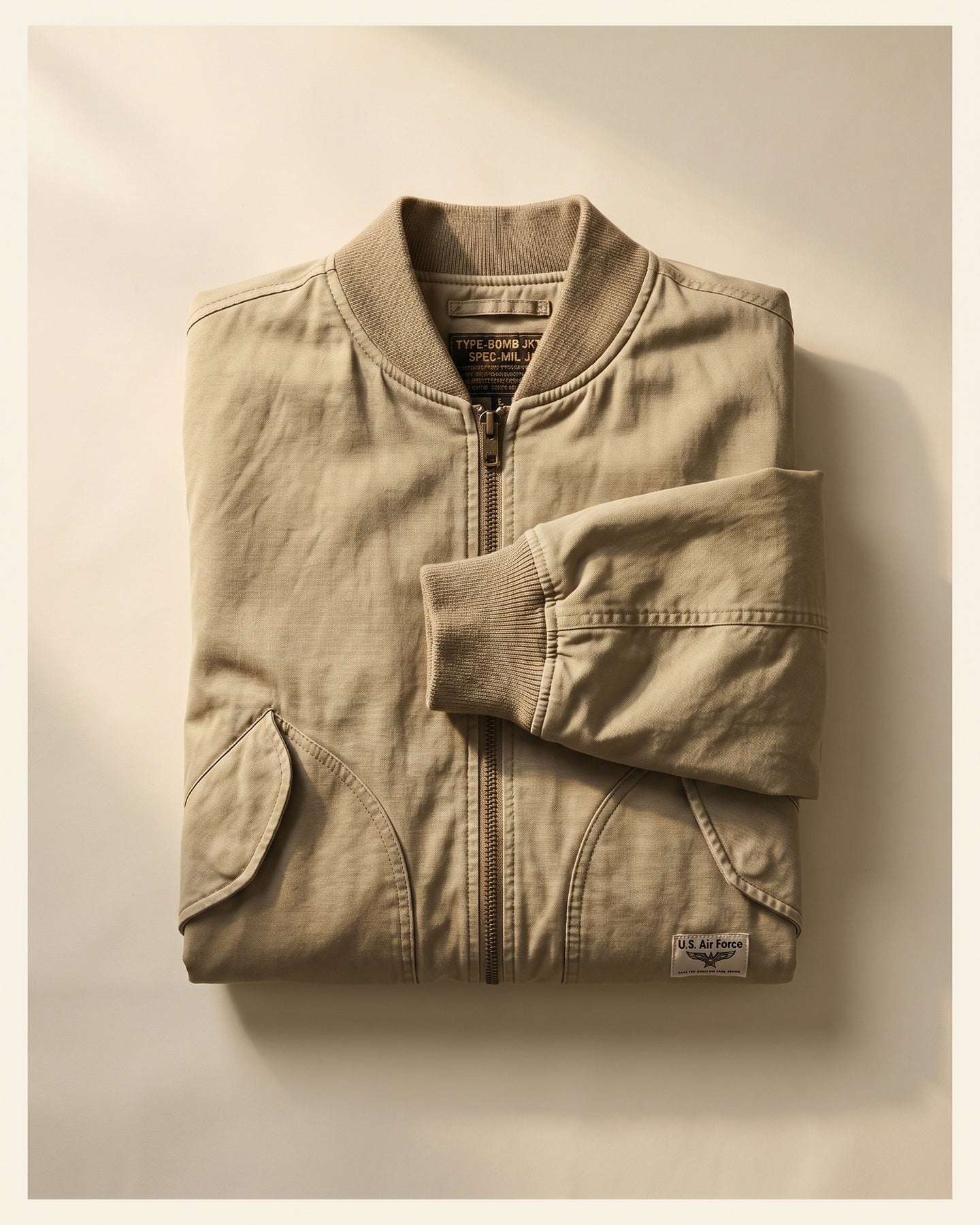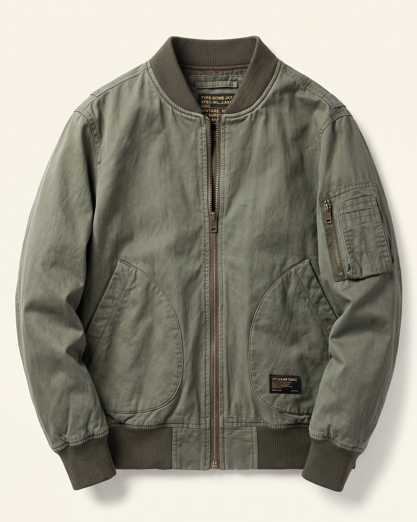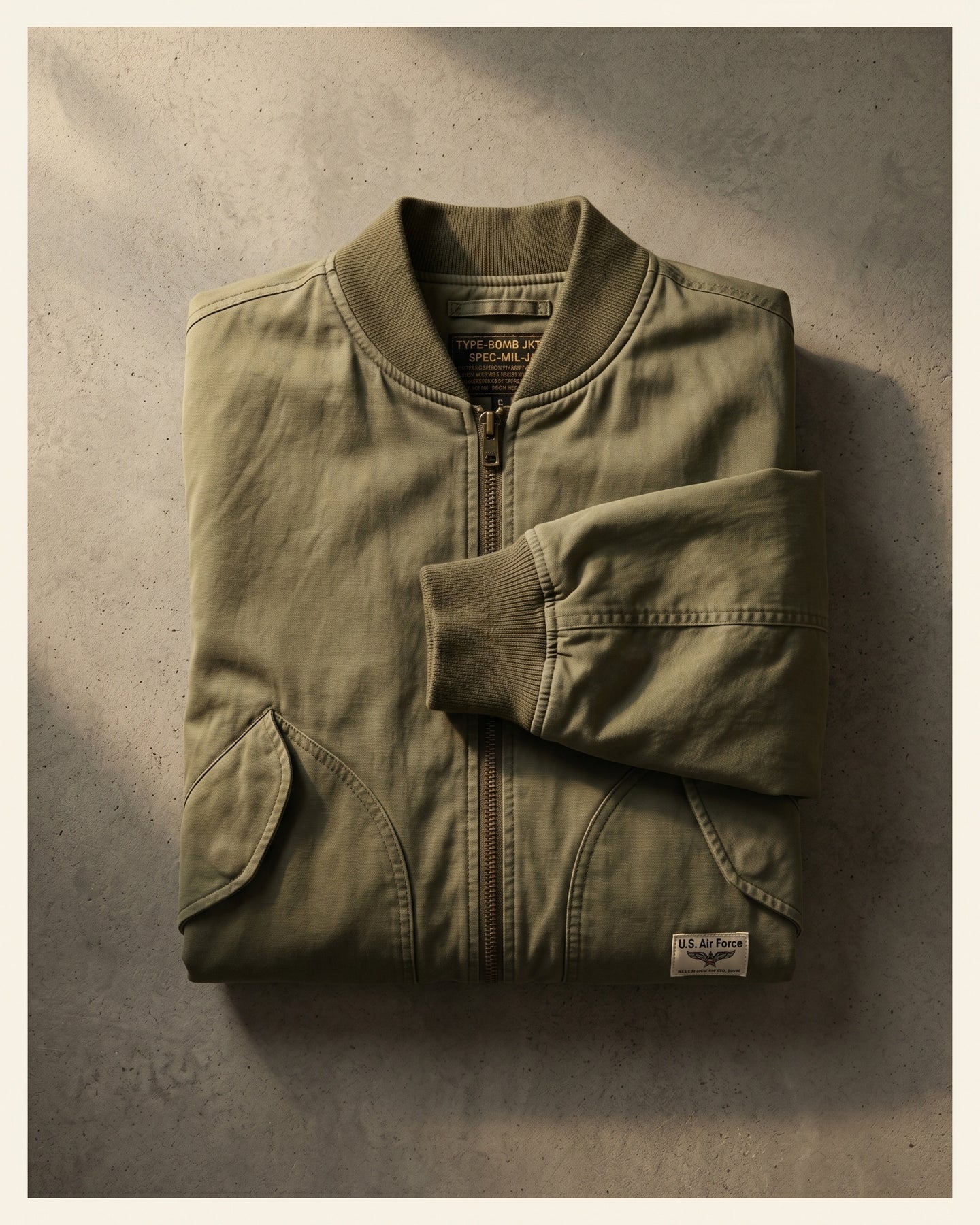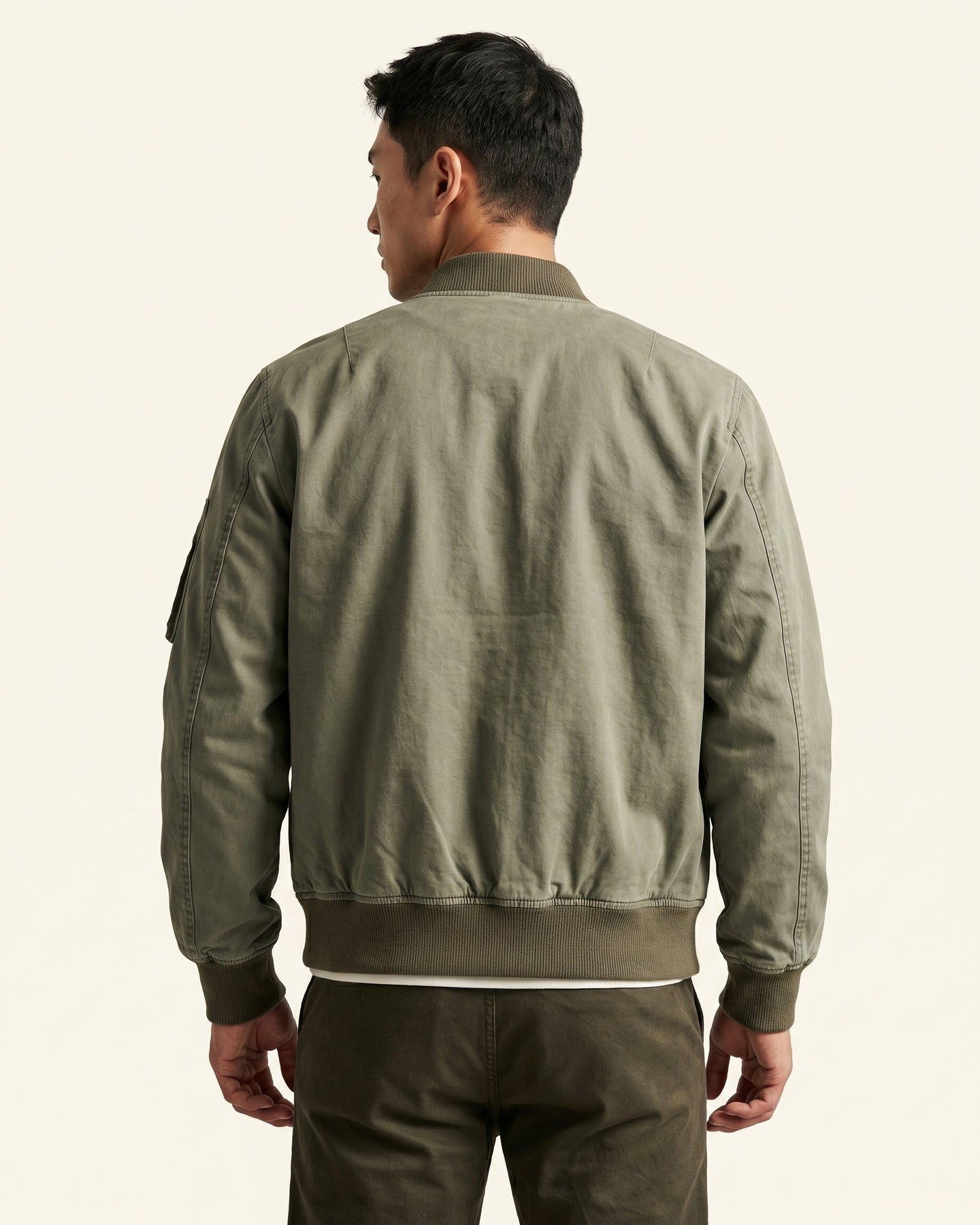 Dense, textured fabric with a washed-down finish that feels broken in from the start. You put this on and the day already looks more considered. The ribbed collar, cuffs, and hem hold the silhouette without stiffening it. Some jackets announce themselves. This one doesn't need to.