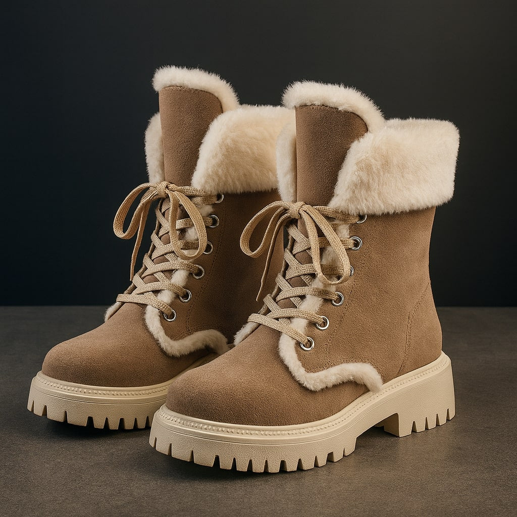 A soft sueded exterior paired with a plush lining reduces cold and wind exposure while keeping the foot comfortably cushioned throughout the day. The lace-up ankle structure and padded sole provide steady support without stiffness, allowing warmth and comfort to remain consistent over extended wear.